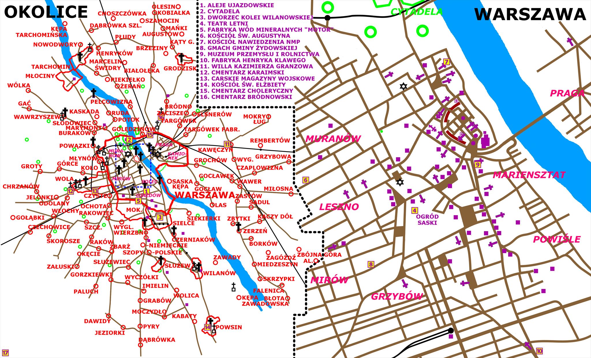 C1 => Powązki Cemetery | C2 => Bródno Cemetery | C3 => Choleric Cemetery