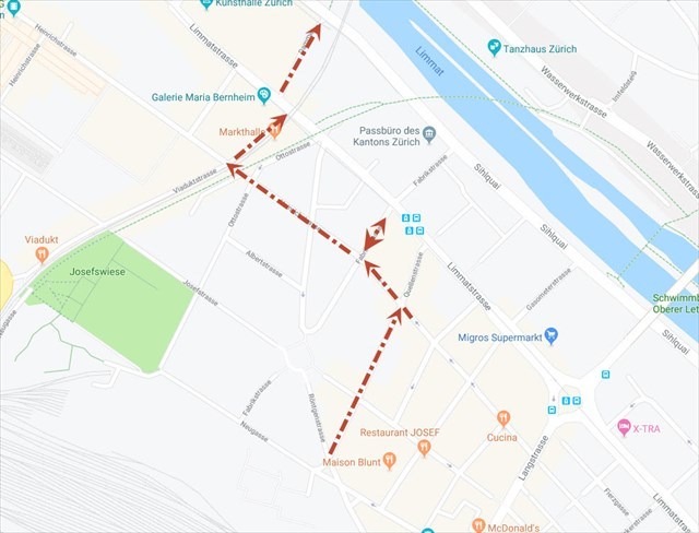 Dann rechts in die Zweierstrasse und links in die Zentralstrasse.