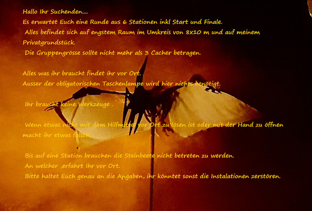 Bitte beachtet das dieses ein Nachtcache ist und als dieser auch nur im Dunkeln zu lösen.