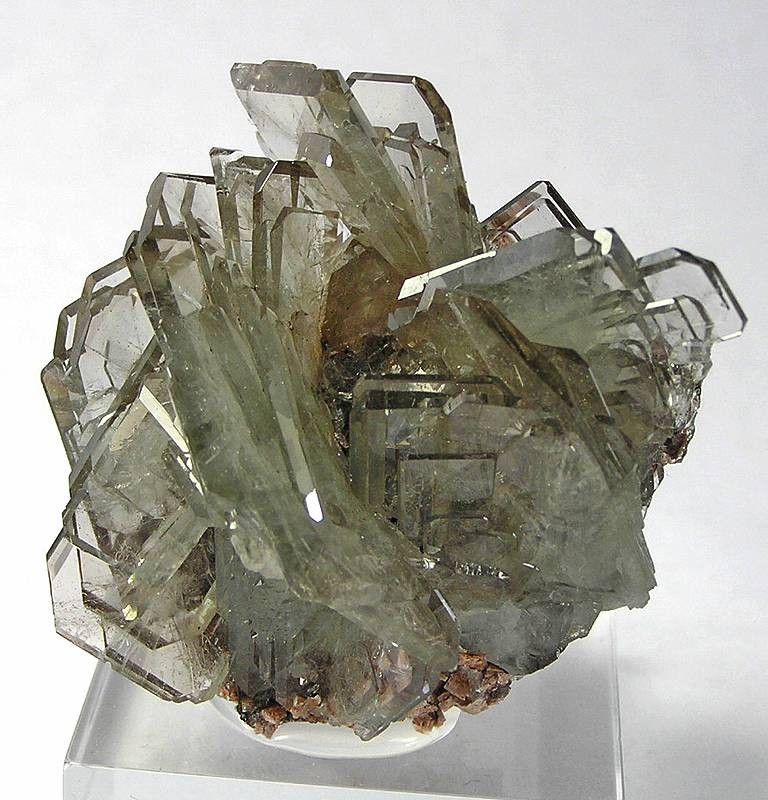 2. Observe the specimens in the showcase: describe their mineralogical conformation. Are they similar to the barite crystals you see in the picture in the listing? What are the differences?