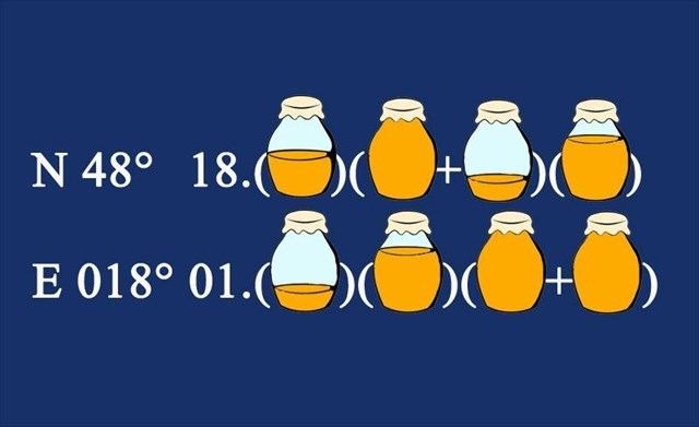 Nuž a kde nás čaká keška? Berme to teraz tak, že medveď sa naje zo štvrtiny pohára medu, čo pre neho predstavuje jeden obed. Celý pohár medu sú tak štyri porcie pre veľkého hladoša. Dostavte sa na súradnice z obrázku.