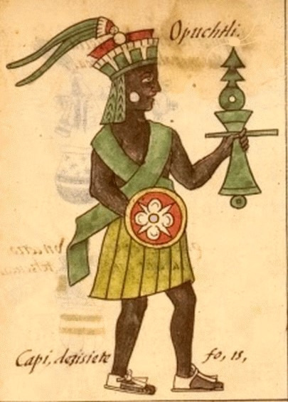 Opochtli , na mitologia, Mexica é o deus que fazia parte do grupo de companheiros de Tlaloc, os Tlaloques, que disseram que ele era o inventor de redes de pesca e também um instrumento para matar peixes, minacachalli. Quando os pescadores e as pessoas da água ofereciam uma festa, ofereciam-se para comer e beber (pulque) que eles mesmos usavam, assim como milho e incenso.