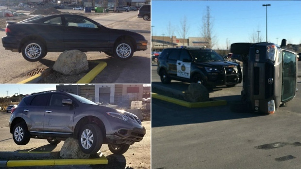 At the beginning of December 2017 The Sage Hill Rock made news as drivers couldn’t seem to stop running into it. It was originally placed in a parking lot at a Sage Hill shopping area surrounded by yellow painted curbs.