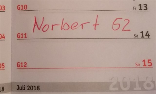 Nur zwei Geburtstage waren notiert ... kam mir merkwürdig vor ... Norbert 52 ... Elsa 13 ... erster Gedanke: hat bestimmt ein Cacher verloren, der ein Versteck notiert hat ...(?) oder drehe ich langsam durch und sehe inzwischen überall nur noch Koordinaten ....