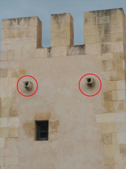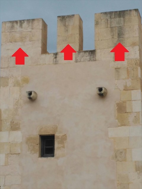 Para obtener la incógnita B y llegar a las coordenadas finales, debes observar de nuevo la torre Castillo. En los cuatro laterales de la torre encontrarás unos elementos sobresalientes que sirven para evacuar el agua de lluvia.