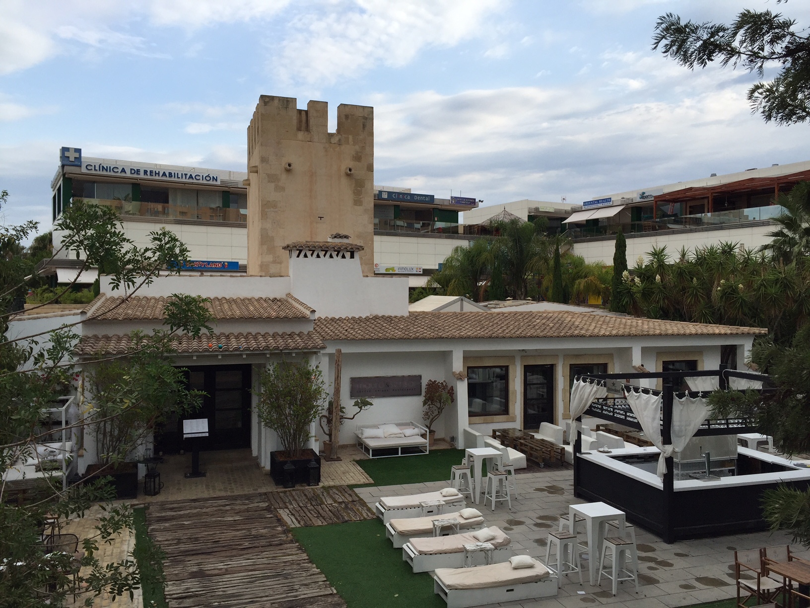 En 2002, con las previsiones de la normativa BIC aunque sin haber sido aprobado el PEPTHA, el Ayuntamiento autorizó a los nuevos propietarios la instalación de un centro comercial alrededor del bloque torre-vivienda. Actualmente la altura de ese centro impide la visibilidad que marca la normativa respecto a las distancias en la zona este y norte.