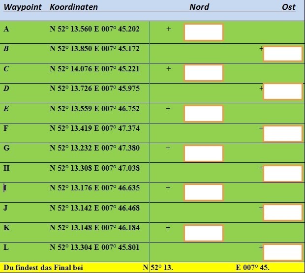 Startpunkt und PKW-Stellplatz: Brochterbeck Dorfkirche Koordinaten N 52° 13.522 E 007° 44.991