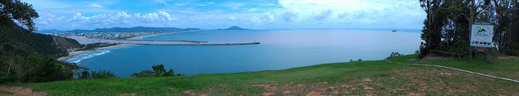 À esquerda, o visitante chega até uma estrutura alta que permite, em visão de 360 graus, visualizar um belo panorama de Balneário Camboriú, Itajaí e Navegantes (da direita/Sul para esquerda/norte). Há também um playground e bancos para descansar.