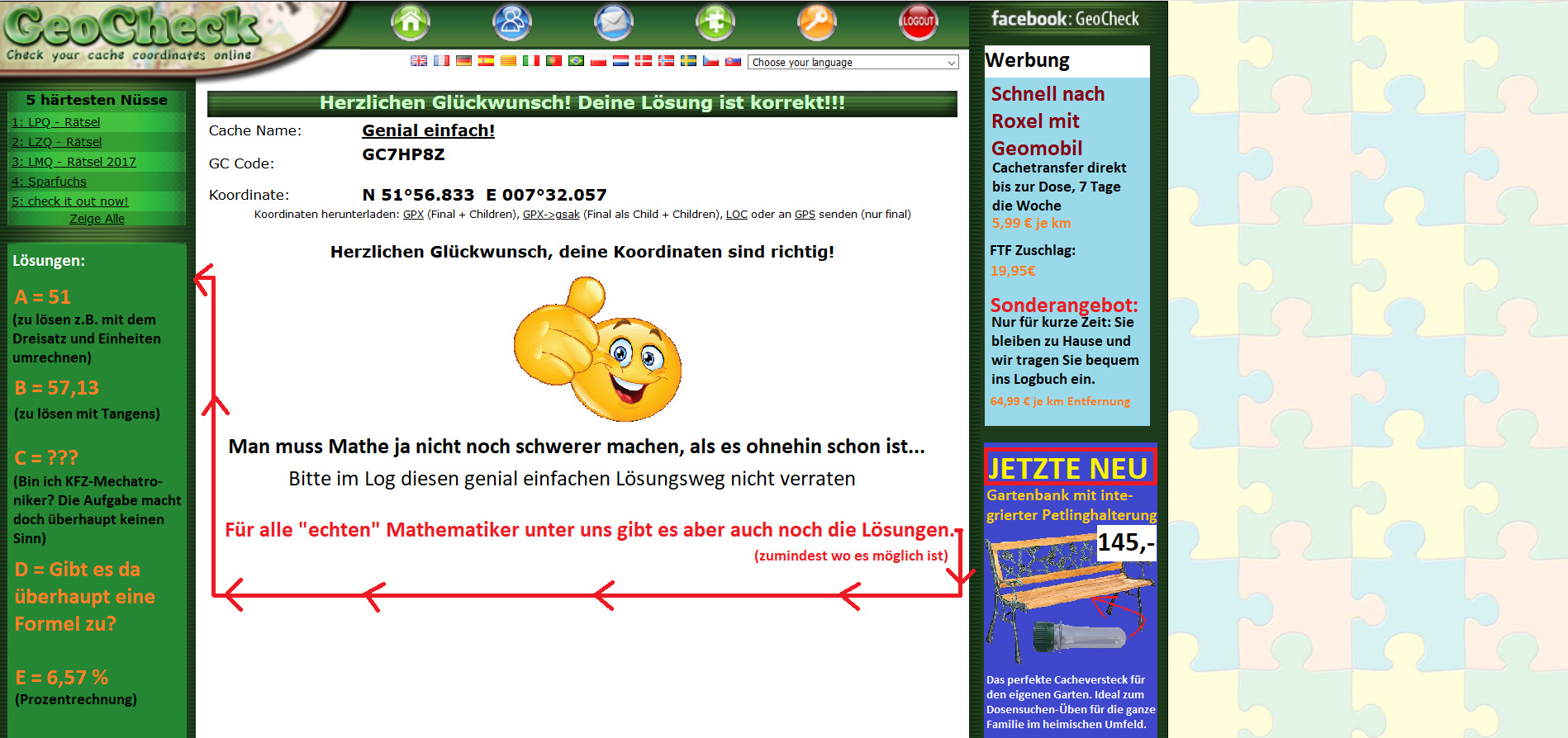 Danke an Ponak22 für den Beta-Test beim Rätsel.