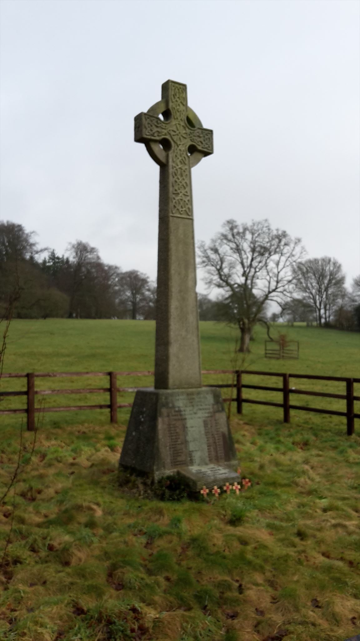 This memorial commemorates the residents of Fosbury and Oxenwood who were killed or missing in the Great War (World War I) and World War II.