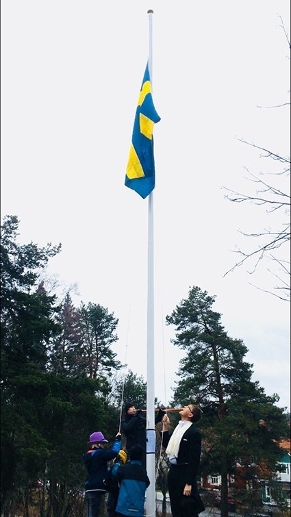 A man, named Kalle S. thought that there should be a new flagpole here in Enskede. His proposal for placement in the Margareta Park district was encouraged by the local administration. The initiator is now responsible, together with volunteering citizens of Enskede for the flag to be hoisted. It is mainly flagged on national/general flag days. Besides that, anyone who has something to celebrate can get a permission to flag, after contact with the responsible person. (Contact CO if you also want to flag in Enskede)