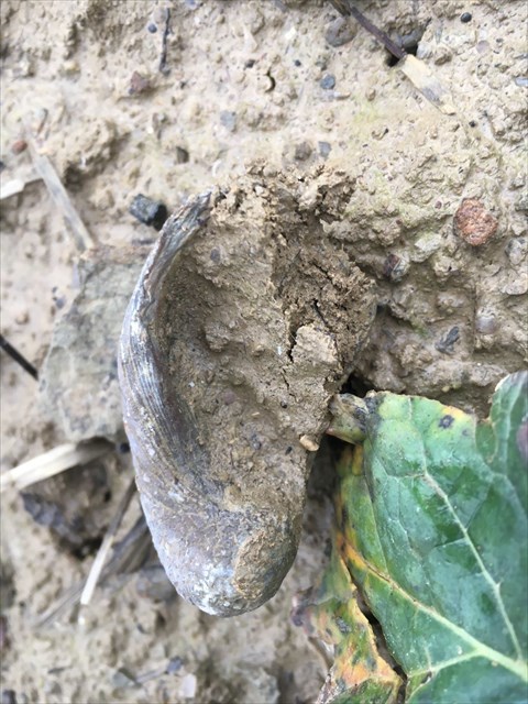 Question 5 : Pour vous rendre au WP2, suivez le chemin vers vers le haut, vous passerez entre des champs. Les sols sont ils riches en fossiles ? Lesquels sont visibles le plus souvent ? Expliquez leur présence.