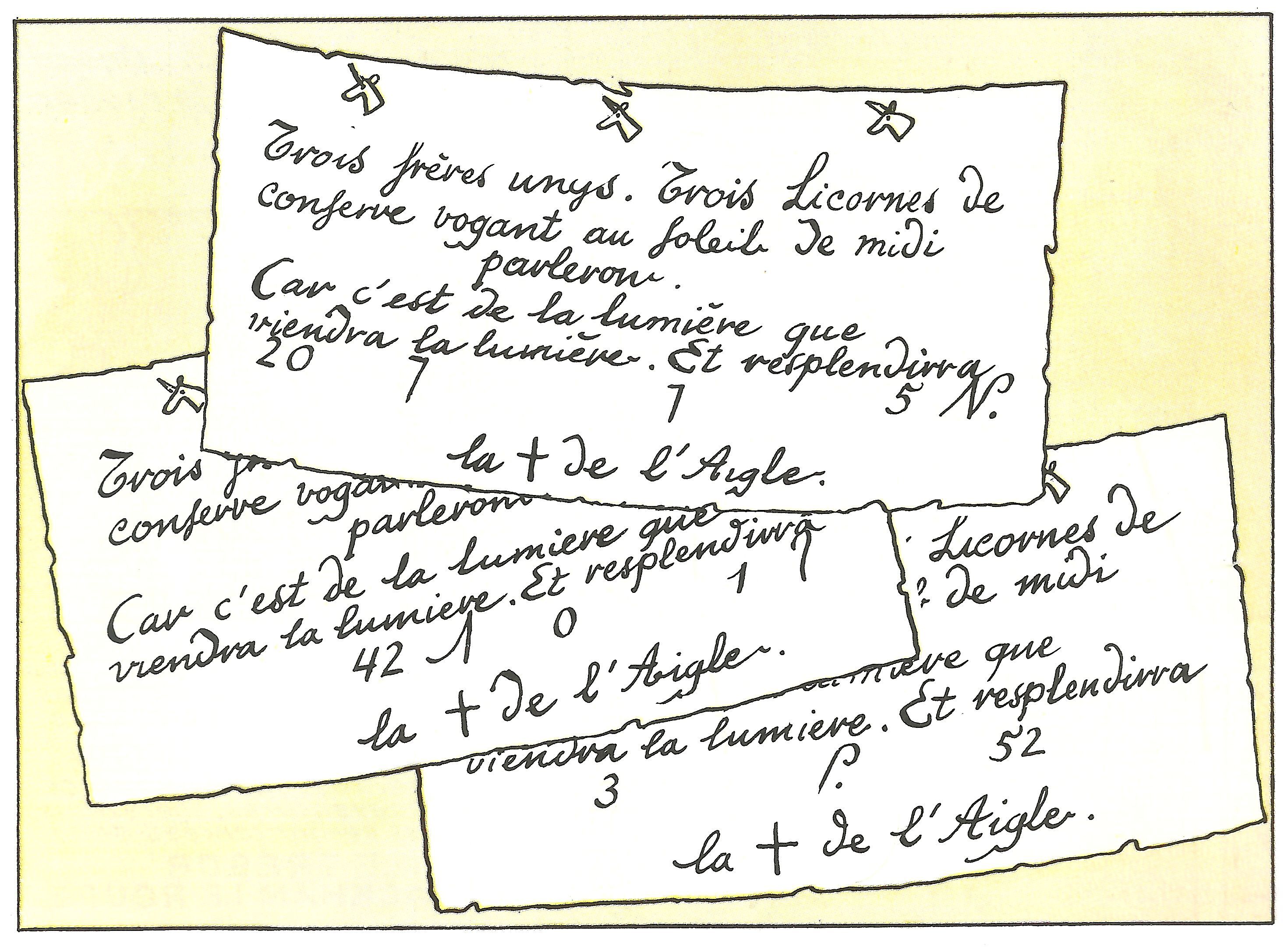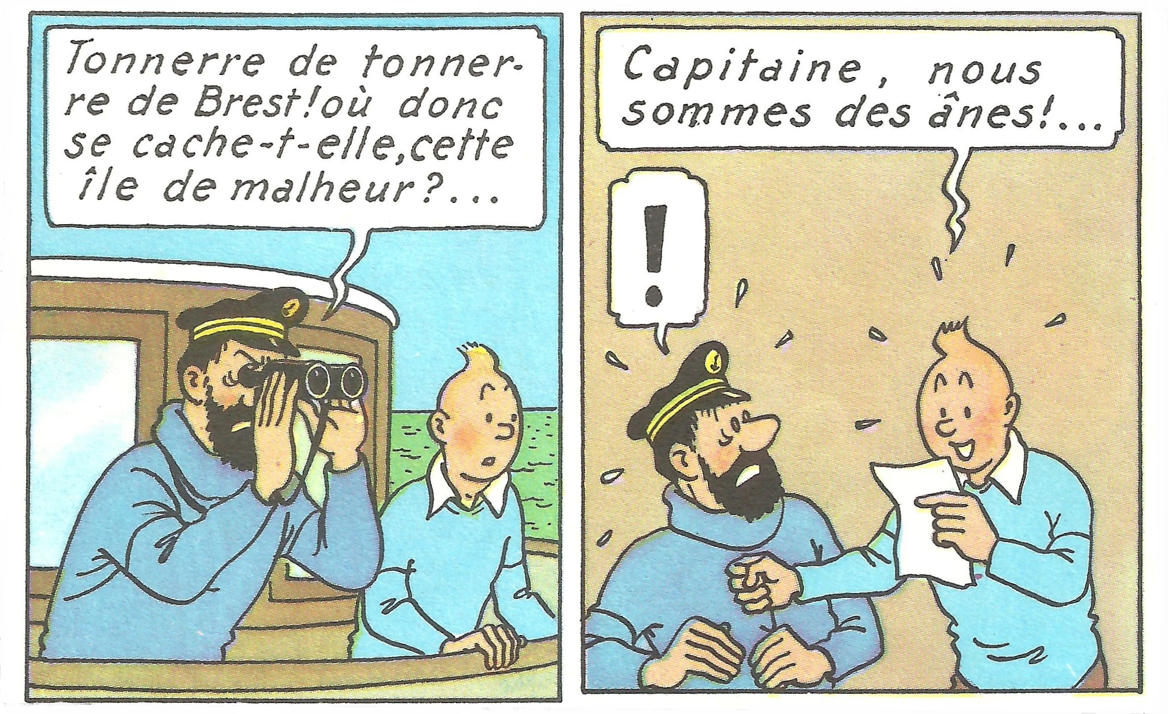 With your friend Captain Haddock, you find the secret of this message and you discover the coordinates of the Treasure Island of his ancestor Sir Haddoque (see "The Secret of the Unicorn")