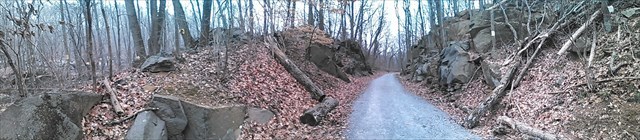 The railroad workers likely utilized the pre-existing fractures in the diabase during thier excavation of the Deodate Dike. You should notice smooth, planar fractures that cut through the rock on either side of the trail. These fractures are called joints. Some of these joints likely formed when the stress of the overlying bedrock was released when erosion removed the overlying bedrock. The removal of that overlying weight, allowed the diabase to expand and create these extension joints. This is a very slow process that probably happened over millions of years,