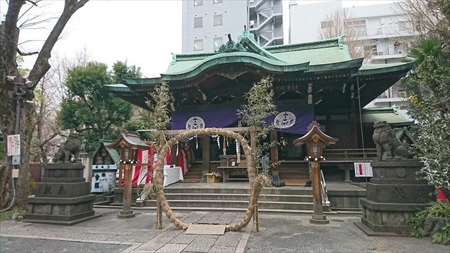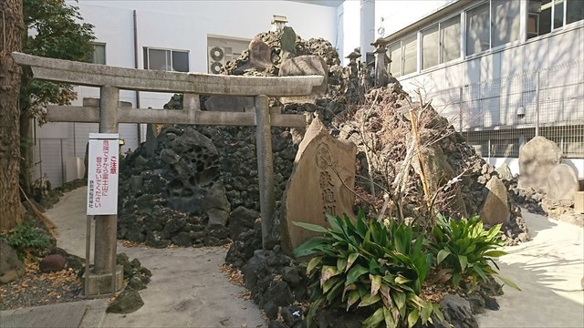 The Teppozu Inari Shrine traces its origins when habitants, who suffered from poor harvest, worshiped the guardian deity of their birthplace as Inari-no-Okami in 841 in the early Heian period. The shrine moved to Kyobashi along with reclamation. Then, it moved to Shin-kyobashi in the late Muromachi period (the end of the 1520s), and it was called Hatchobori Inari Shrine. It moved to southeast of Inari Bridge in 1624 in early Edo period, and had the original Yahata Shrine as an auxiliary shrine. Finally, it moved to the current location about 120 m south from there in 1868. In this shrine, there is a Fujizuka, miniature of Mt. Fuji made from lava of Mt. Fuji.