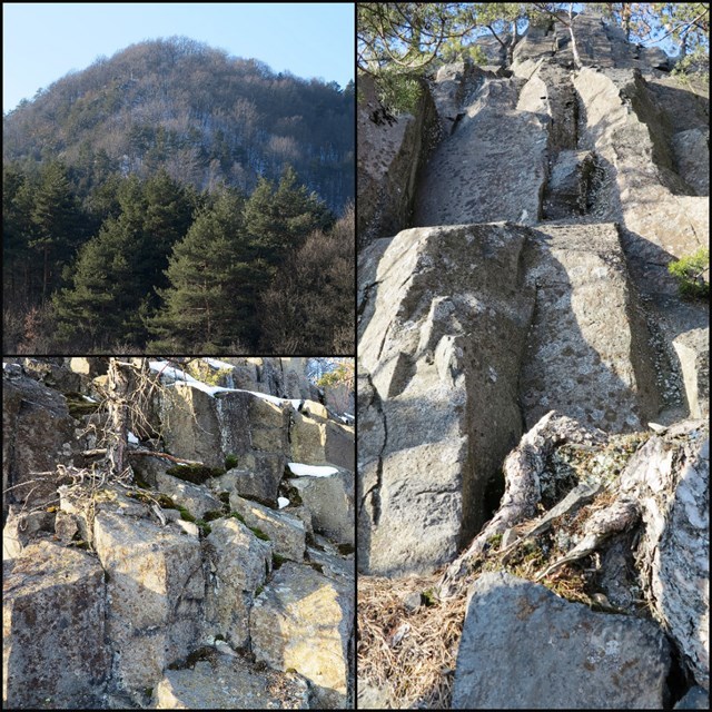 Pfaffenberg - andezitové stĺpovité formácie obnaženého treťohorného jadra sopky