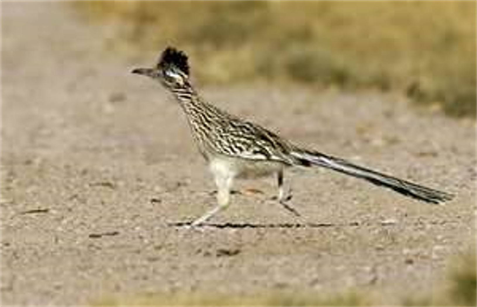 Greater Roadrunners are large birds usually seen moving along roads in woodlands. They eat lizards, snakes, eggs, and anything else they can catch. They can fly well, but usually avoid predators or danger by running into cover.