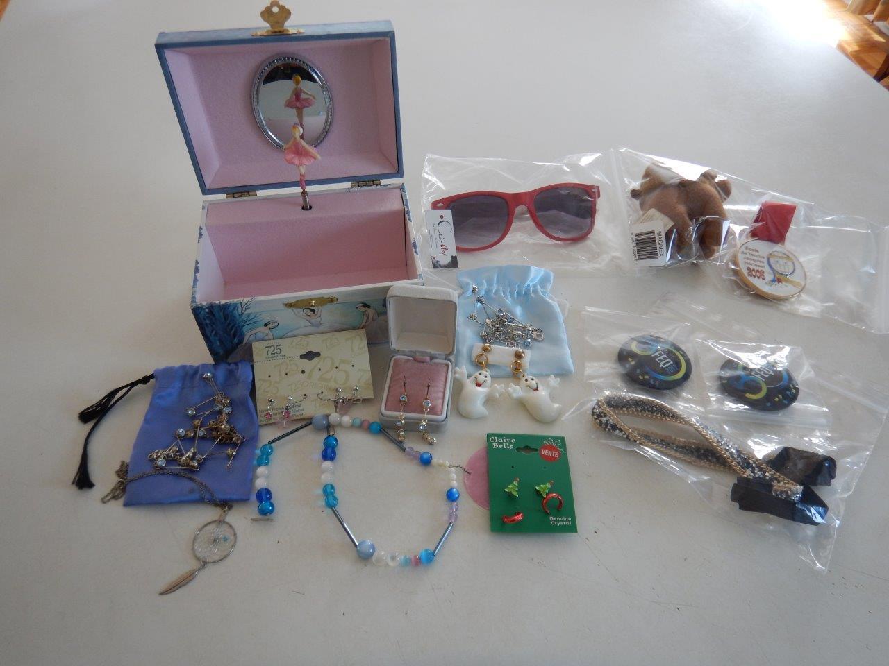 Géogugusses dont un petit coffre à bijoux musical avec ballerine, bijoux inclus (règle primordiale : vous prenez quelque chose → vous laissez quelque chose de valeur équivalente ou supérieure)
