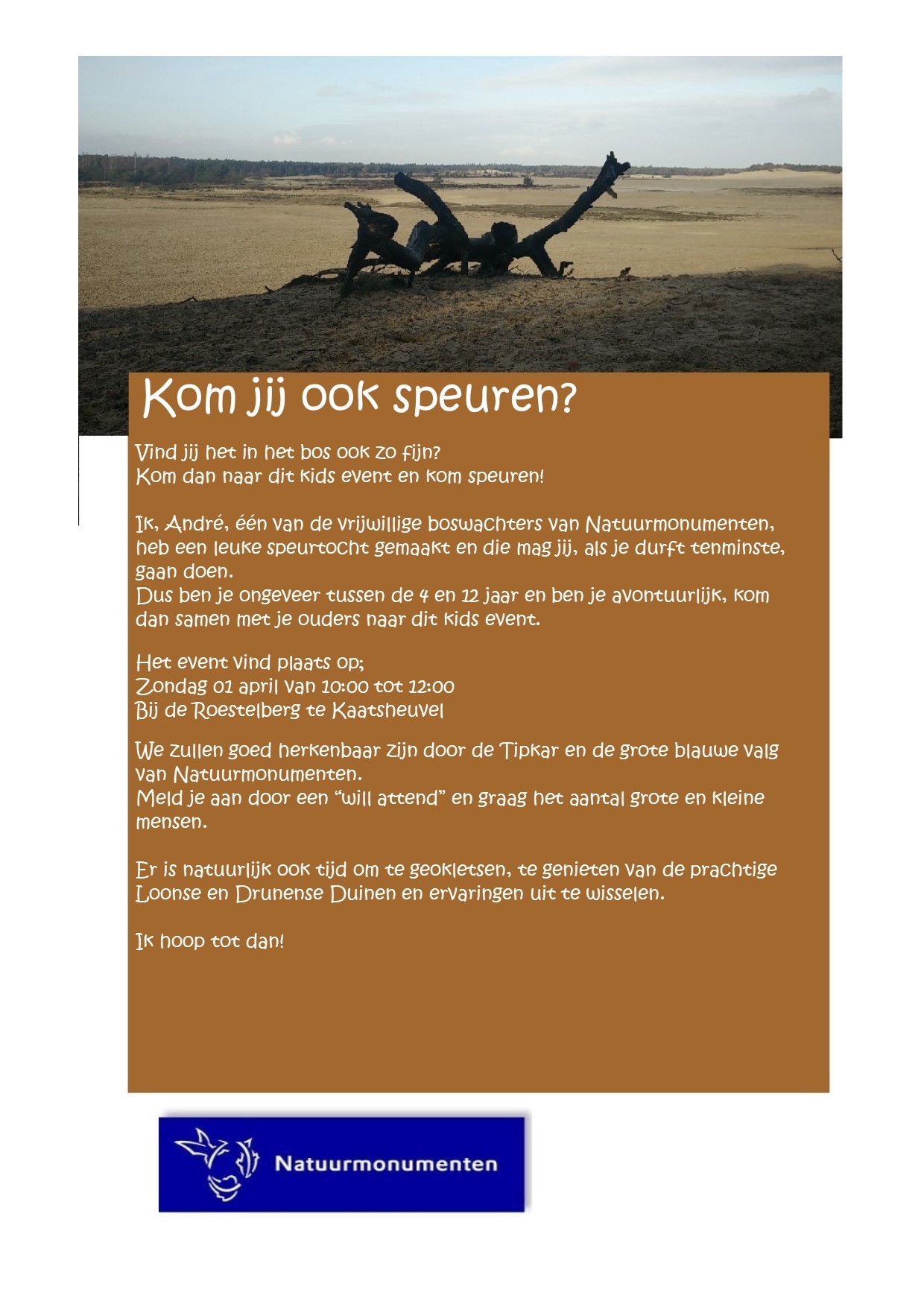 Speur tocht event voor kids van ongeveer vier tot twaalf jaar. Ouders en Opa en oma zijn van harte welkom met hun (klein)kids. Maar ook zonder kids ben je van harte welkom. ;-)