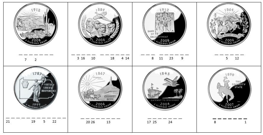 The 50 State Quarters Program was the release of a series of circulating commemorative coins by the United States Mint. From 1999 through 2008, it featured each of the 50 U.S. states on unique designs for the reverse of the quarter. Some of my favorite quarters from the series are shown here.