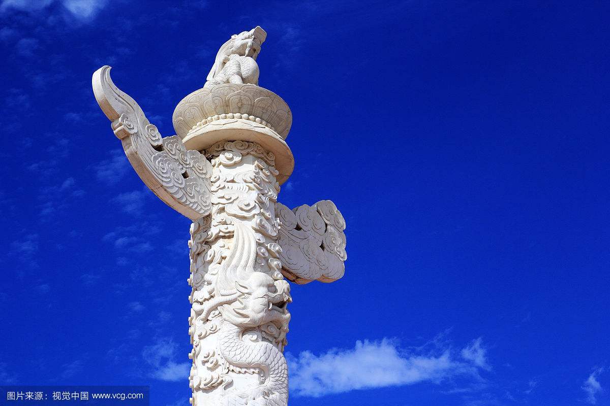 华表是中国特有的古代文化遗产之一,最早是用来供人写谏言的,后来逐渐发展成为皇权的象征,一般都放置在宫殿外或皇陵的道路两侧。华表一般由底座、蟠龙柱、承露盘和其上的蹲兽组成,通常由汉白玉雕刻,底座大多是雕刻由龙形的方形莲花座或须弥座;蟠龙柱上雕刻一只蟠龙盘并有云纹装饰,上端横插一个云板;石柱顶端有一个承露盘,与底座对应,形成天圆地方,上面有一蹲兽。一般认为华表的雕刻是皇权的象征,代表皇帝的权利至高无上,无可撼动。