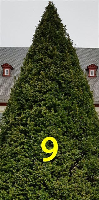 Bild 9: Wie viele dieser interessant geschnittenen Bäumchen befinden sich auf dem Platz?
