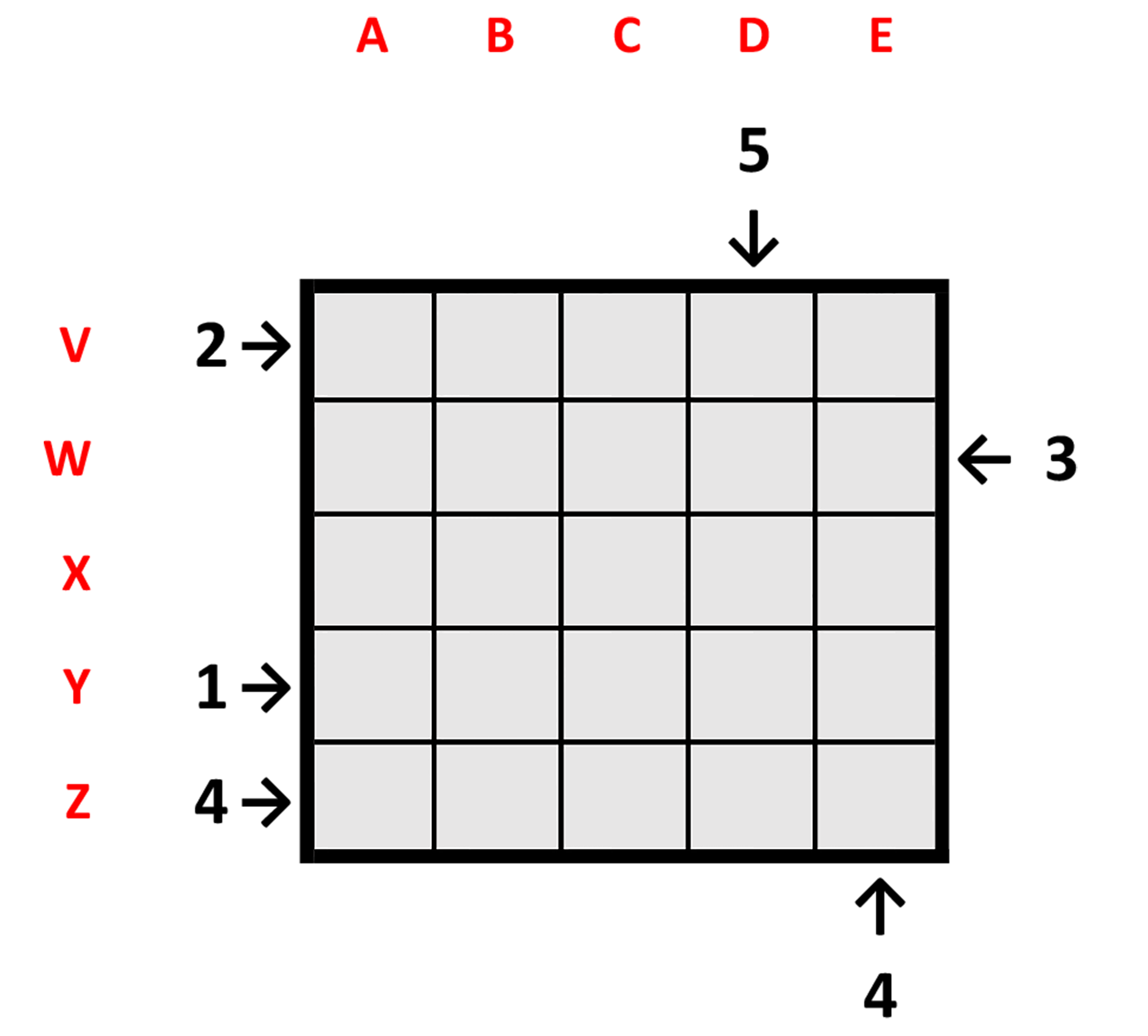 Het rooster stelt een stad voor gezien vanuit de lucht. In elke hokje van het rooster staat een gebouw met een hoogte van 1, 2, 3, 4 of 5 verdiepingen. Elke regel en elke kolom moeten elk alle gebouwen bevatten met 1 t.e.m. 5 verdiepingen. De aantallen vermeld buiten het rooster geven aan hoeveel gebouwen in de rij zichtbaar zijn van op de grond.