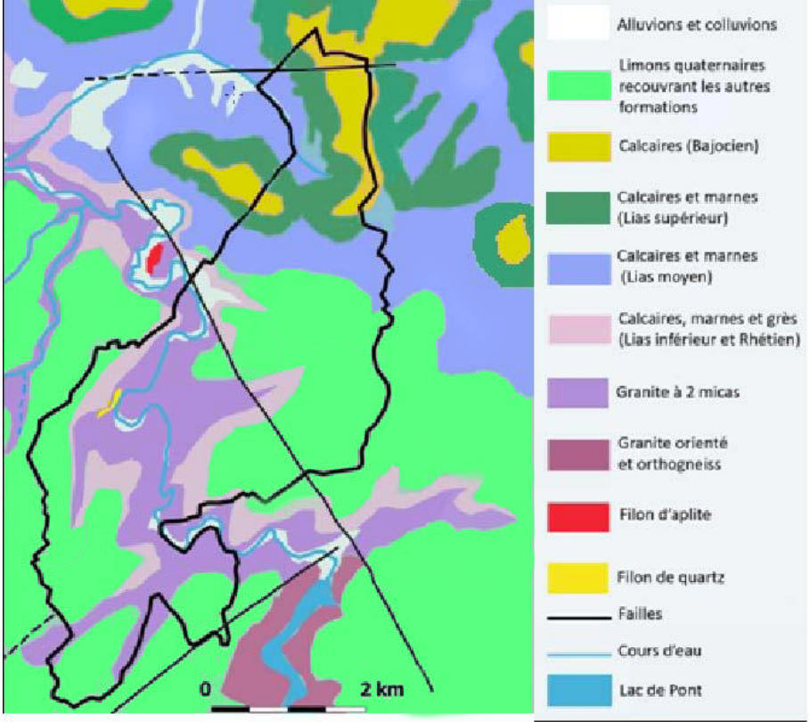 South of the agglomeration the limestone diminishes to only cover the granitic base of the Morvan. This eruptive rock has locally emerged from the calcareous bedrock.