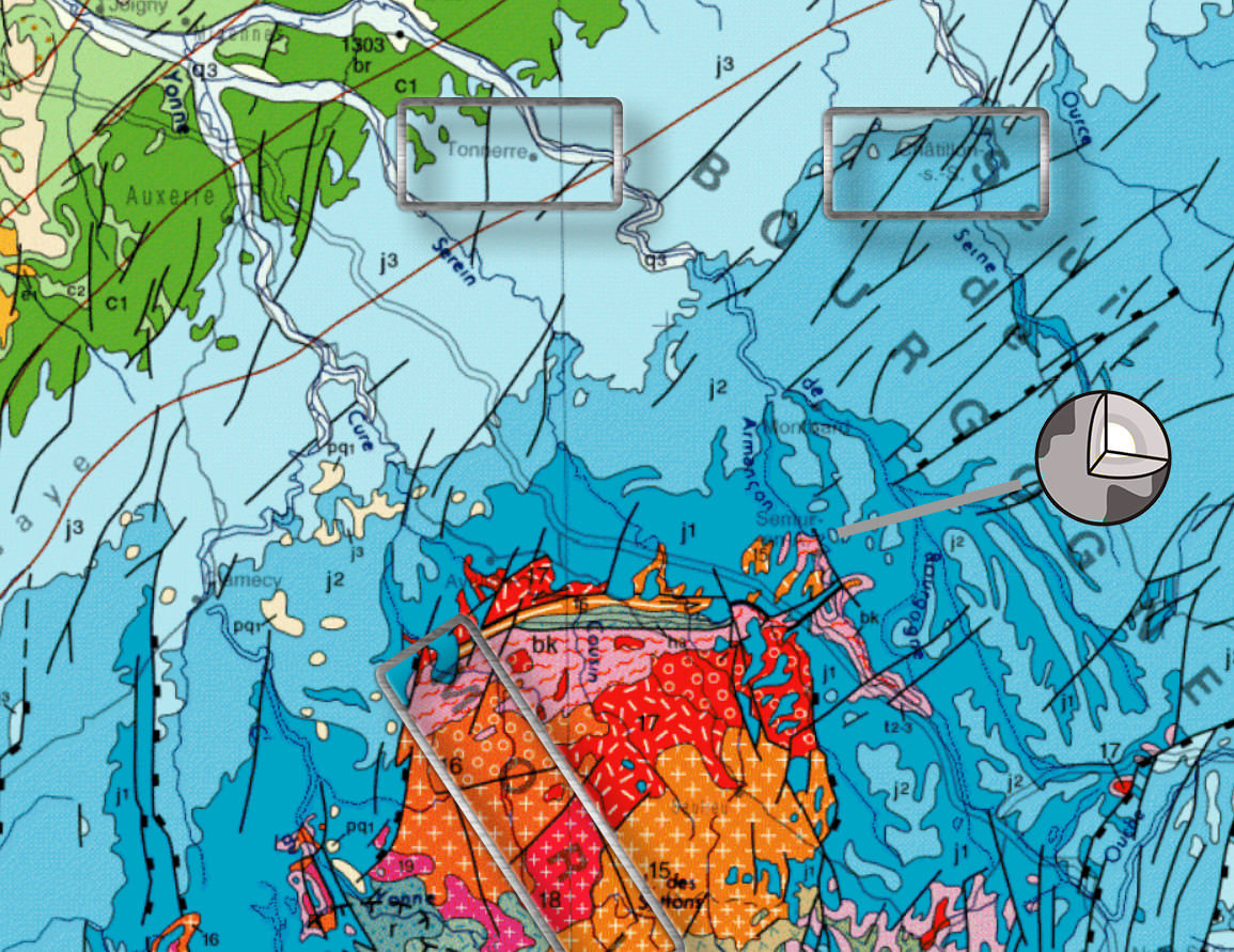 Au Sud de l’agglomération le calcaire s’amenuise pour ne faire que recouvrir le socle granitique du Morvan. Cette roche éruptive a localement émergé de l’assise calcaire.