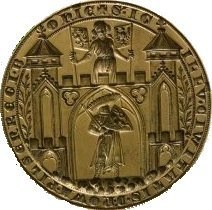 Z otisku na listině z roku 1307 známe nejstarší městskou pečeť, která je obsahově podobná s dnešním srdečním štítkem, tedy s postavou krále zakladatele stojící v městské bráně.