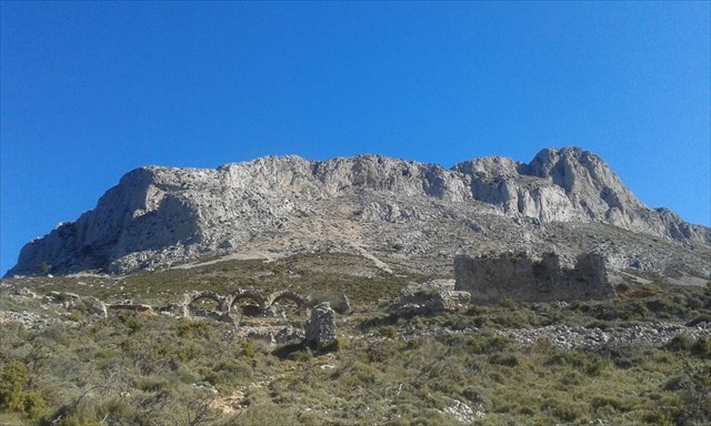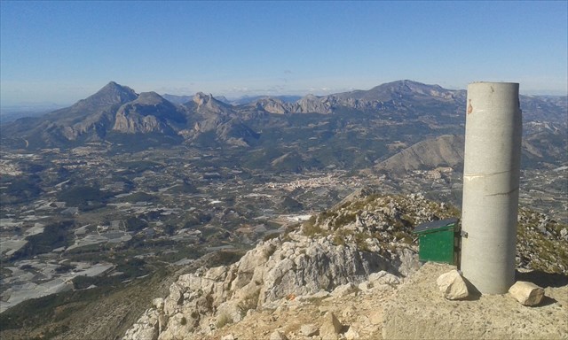 En la foto podemos apreciar como se extiende la cresta hacia el este, desde la cima, con el Peñón de Ifach al fondo.