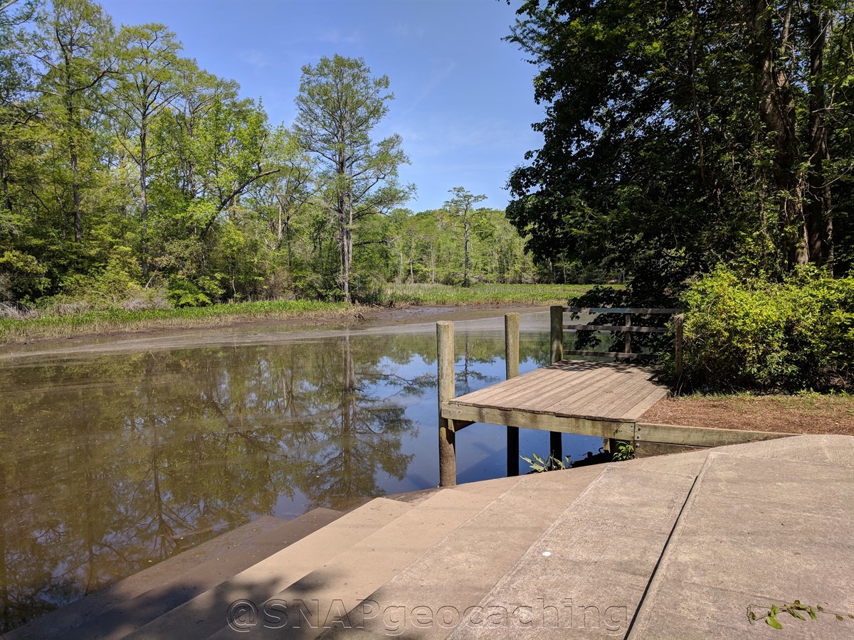 This geocache is a multi-cache is which you will need to perform an offset. The given coordinates for this geocache are for parking. From parking, you need to look for 3 sided Captain John Smith Information Sign. From the information sign, project a waypoint 122 feet at a bearing of 355 degrees. The cache is hidden just inside the tree line inside a stump.