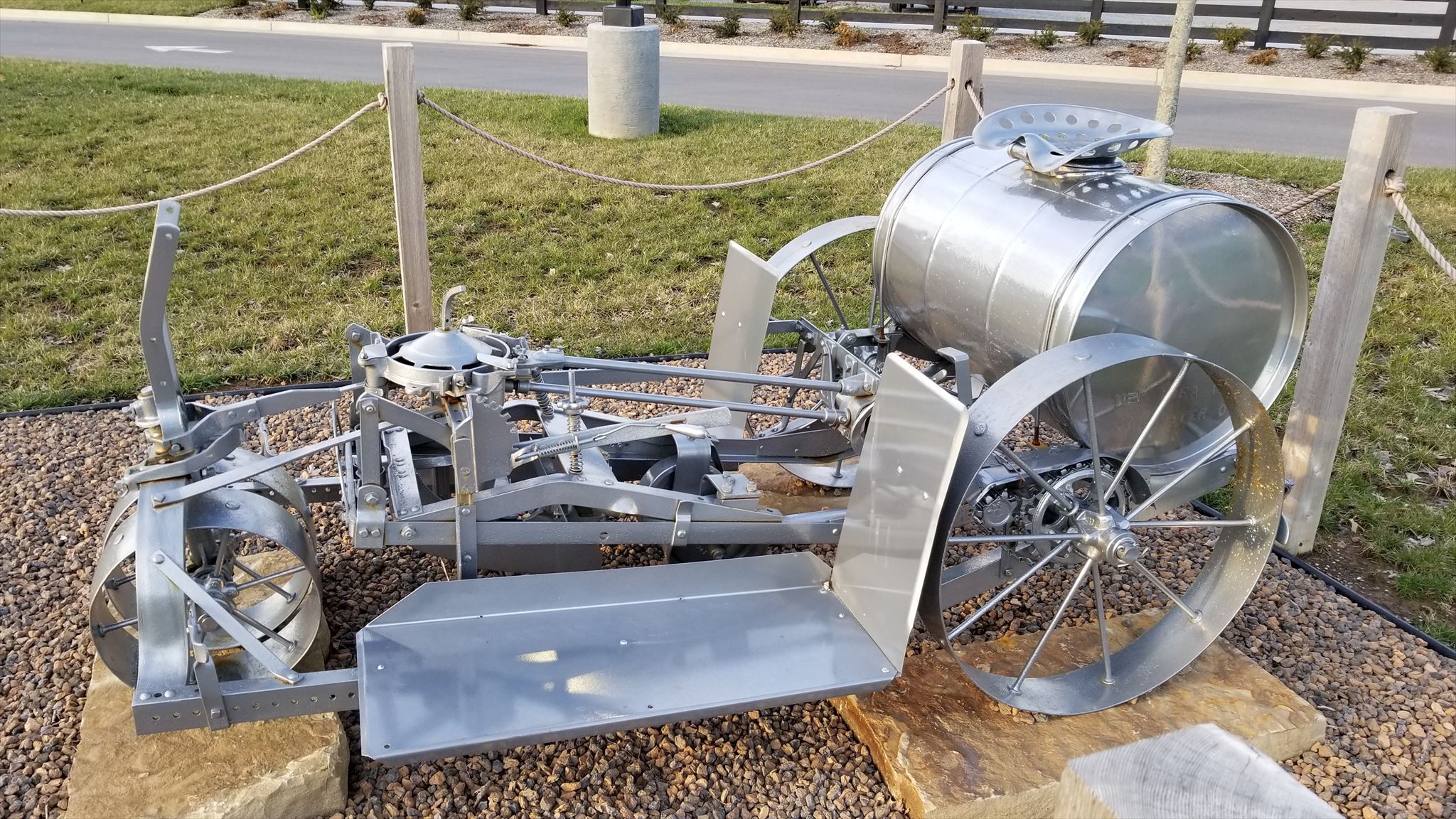 This display of a restored hay sickle mower, hay rake and tobacco setter is an interesting sight.