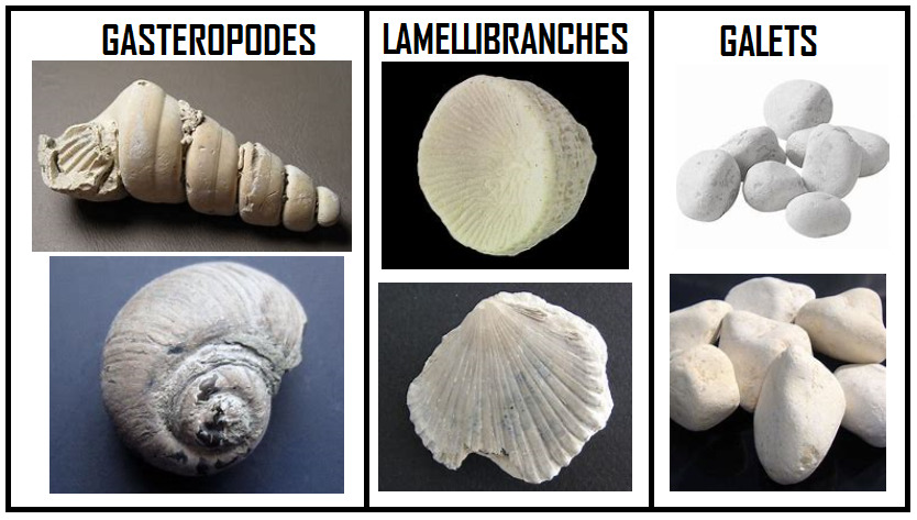 Quel élément est présent en plus grand nombre : gastéropodes ? lamellibranches ? petits "galets" ?