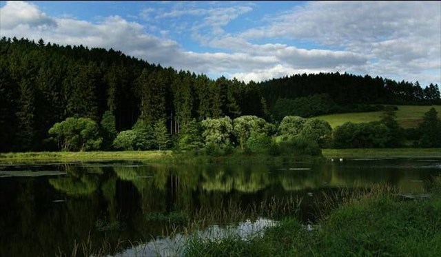 Tradiční keš,umístěná na netradičním místě – na otrůvku uprostřed rybníka.