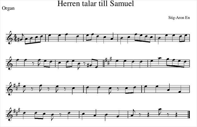 – Jag har låtit mig inspireras av dagens gammaltestamentliga text och komponerat ett eget postludium – Herren talar till Samuel.