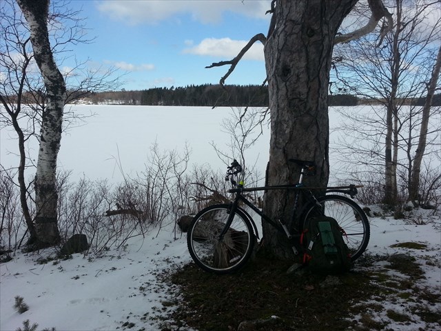 Idag var jag på en tur på isen för FTF-jakt. Har nu fått lite rutin av att gå med andra på sjöar.. Gav mig iväg själv i detta soliga väder, istjockleken visade sig vara 44cm utanför Sandtorpbadet.. Trampcykeln var självklart med, gick att cykla bitvis, skaren kunde vart bättre. Typ, jag ska väl inte vara sämre.. En ö-cache, så även "stor CO" i kommunen själv får nått att leta efter! =)