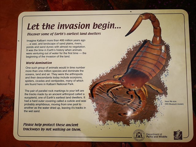 | Western Australia is well known for its very old rocks, but it also has many significant localities of younger rocks (Phanerozoic, less than 541 million years). Geologists working on trace fossils in the Tumblagooda Sandstone have described what may be some of the earliest steps of life on land. The following describes the Tumblagooda Sandstone and its formation and landscape, as well as the aquatic and terrestrial traces of life it preserves. |