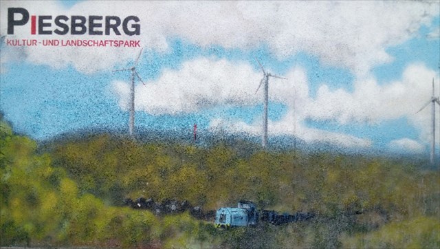 Dieses Trafohaus zeigt unseren Stadtberg im Nebel, die Windräder weithin sichtbar - und jeder Osnabrücker weiß, wie schön hier ein Spaziergang zu jeder Tageszeit, jeder Jahreszeit ist. Mit der Feldbahn kann man den Berg erkunden, Fossilien gibt es zu finden, der Blick in die Ferne von den inzwischen 3 tollen Aussichtsplattformen ist berauschend und auch Kultur hat sich rings um den Berg angesiedelt: das Piesberger Gesellschaftshaus veranstaltet vom Flohmarkt bis zum Tangotanz eine Bandbreite an Events und unser Museum Industriekultur ist ohnehin sehenswert.
