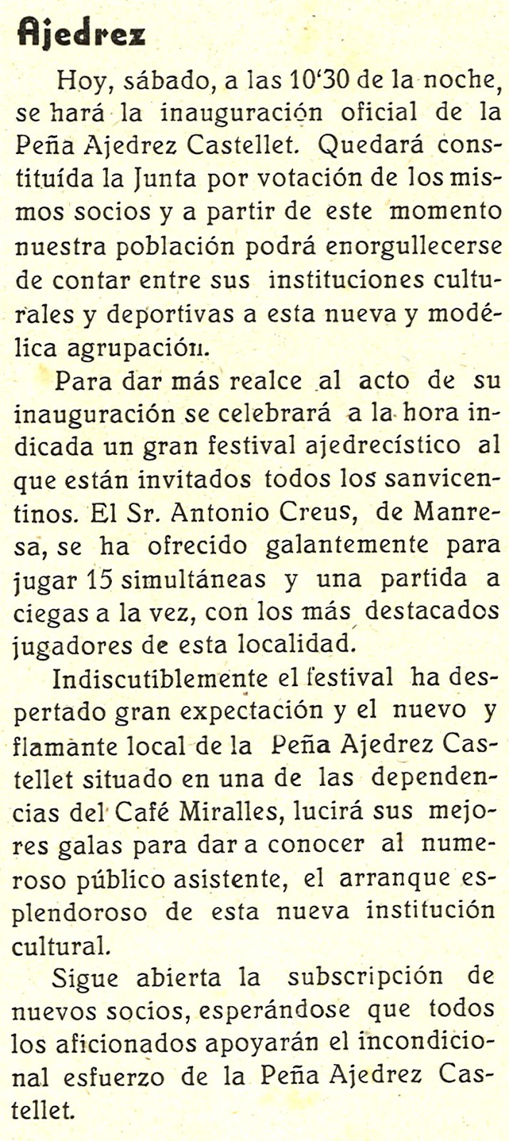 L,entitat va ser fundada l’any 1950 , s’adjunta article CASTELLET num 68