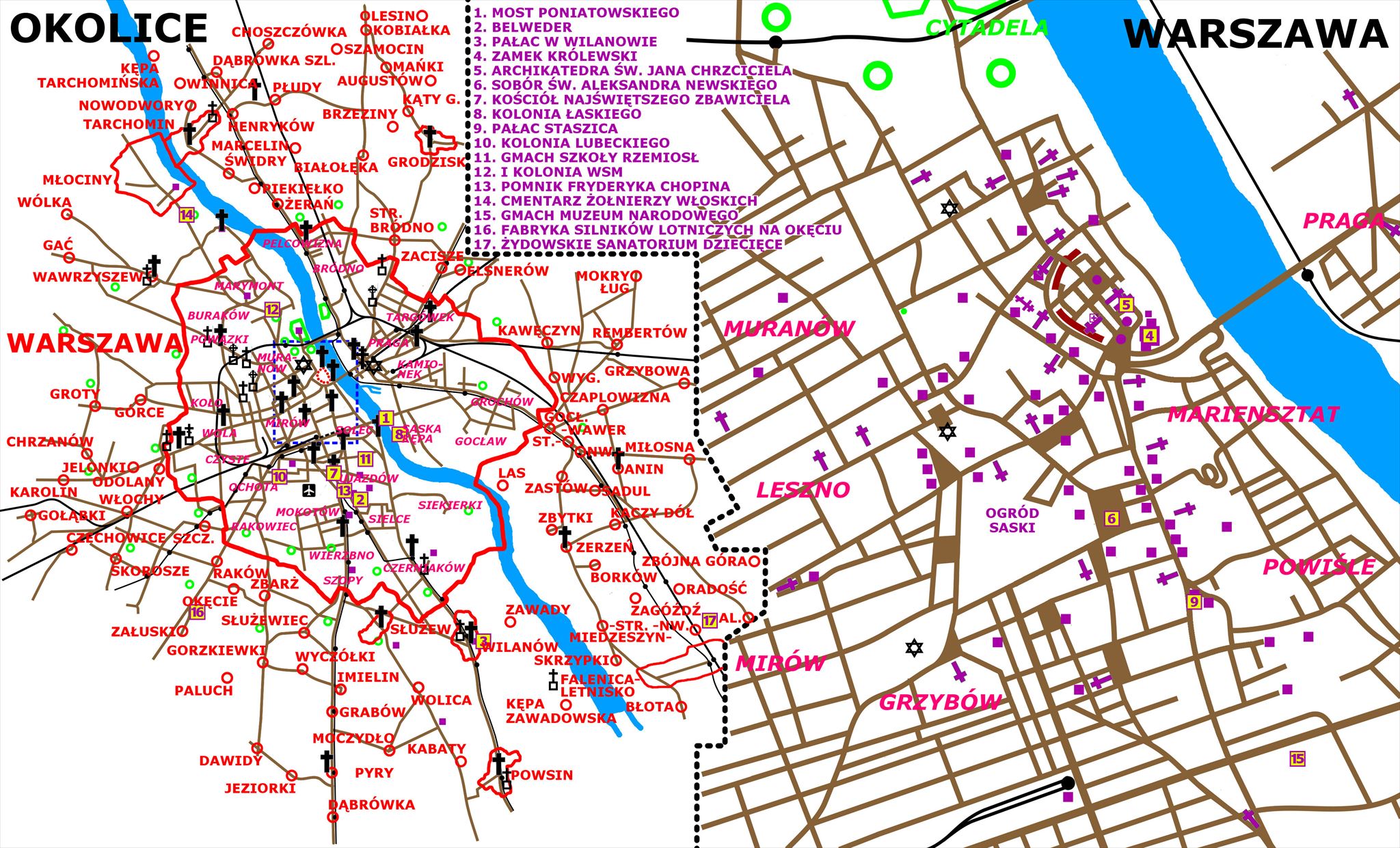 B1 => Clerks' Colony, Żoliborz | B2 => Łaskiego Colony, Saska Kępa | B3 => Lubeckiego Colony, Ochota