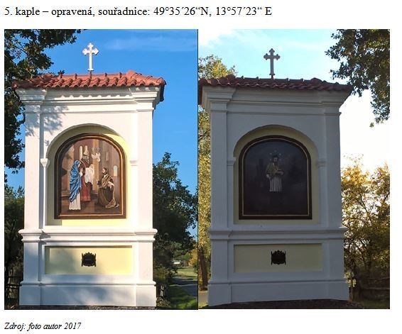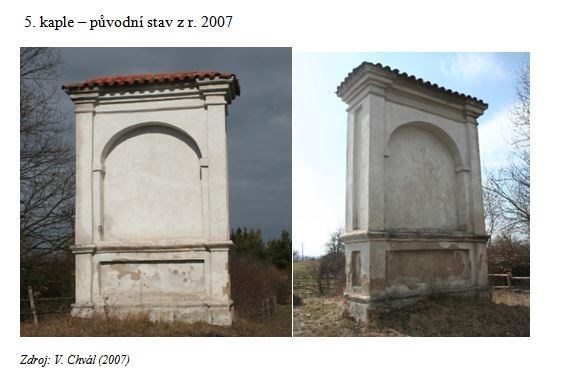 5. kaple – Stojí v katastru Chrást („Pod Chrástem“). Vystavěl ji Hynek Vrábský z Vrábí, pán na Drahenicích, původně byla na kapli zobrazena jednotlivá zastavení modlitby I. růžence radostného – Obětování Páně, v roce 2015 namaloval z jedné strany nový obraz Lubomír Pešek a druhý (tentýž autor) roku 2017 (nepodařilo se zjistit, jaká vyobrazení byla na severní straně kaple, proto byly zvoleny obrazy světců), (Nadační fond pro Březnici 2017).