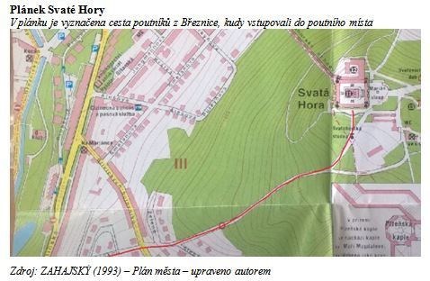 Od poslední šestnácté kapličky (zaniklá) pokračovali poutníci ke Svaté Hoře, míjeli Mariánskou kapli a vcházeli do svatostánku Březnickou bránou. V levé části Svaté Hory je Březnická kaple, nad jejímž vchodem je umístěn lunetový obraz s poutníky.