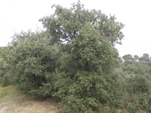 Quercus ilex (encina) es un árbol de la familia de las fagáceas. Otros nombres vulgares con los que se conoce a la encina son carrasca, chaparra o chaparro. Es un árbol perennifolio nativo de la región mediterránea de talla mediana, aunque puede aparecer en forma arbustiva, condicionado por las características pluviométricas o por el terreno en el que se encuentre.