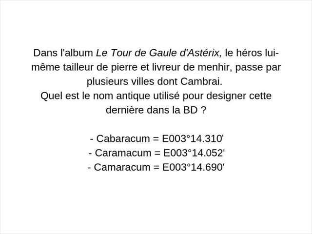 Résolvez ces deux énigmes taillées sur mesure par Obélix et découvrez les coordonnées GPS qui vous mèneront à la cache finale.