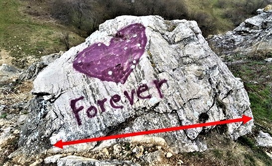 Q6 Nájdi vápenec s veľkým červeným srdcom a odmeraj jeho šírku v mieste nápisu. (presne)