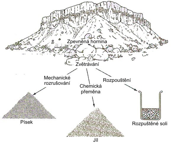 Vplyv mrazu - vplyv nízkych teplôt sa prejavuje v oblastiach kde klesá teplota pod bod mrazu. To zapríčiní zmrznutie vody v rôznych puklinách a škárach a zväčšenie jej objemu a tým aj tlaku na okolie (podľa meraní až 21 MPa pri −22 °C). Tlak je často vyšší ako odolnosť horniny a preto zapríčiňuje jej rozpad. Podobný účinok má aj kryštalizácia niektorých minerálov z roztokov. Ak sa nasýtený roztok dostane do pukliny, začne sa kryštalizácia a ako minerálne zrná zväčšujú svoj objem, dochádza k rozrušovaniu horniny.