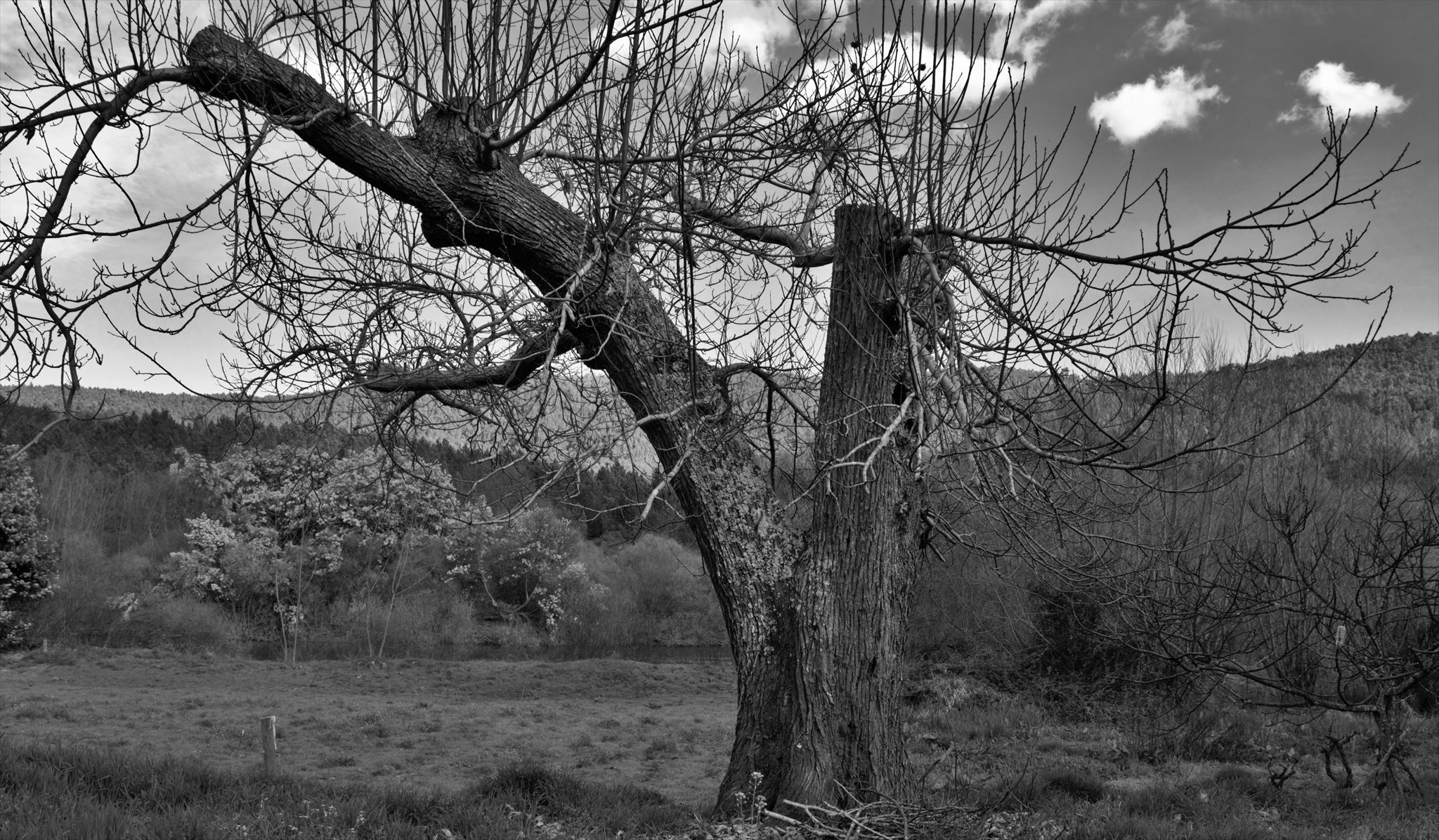 Um velho castanheiro saúda-nos, preocupado.