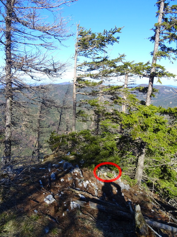 Da der eigentliche „Gipfel“ im dichten Wald versteckt ist, findet sich der Cache wenige Meter entfernt an prominenterer Stelle an den eindrucksvollen Nordabstürzen ins Myratal (Spoiler). Im Inneren des Berges betreibt die GeoSphere Austria das Conrad Observatorium.