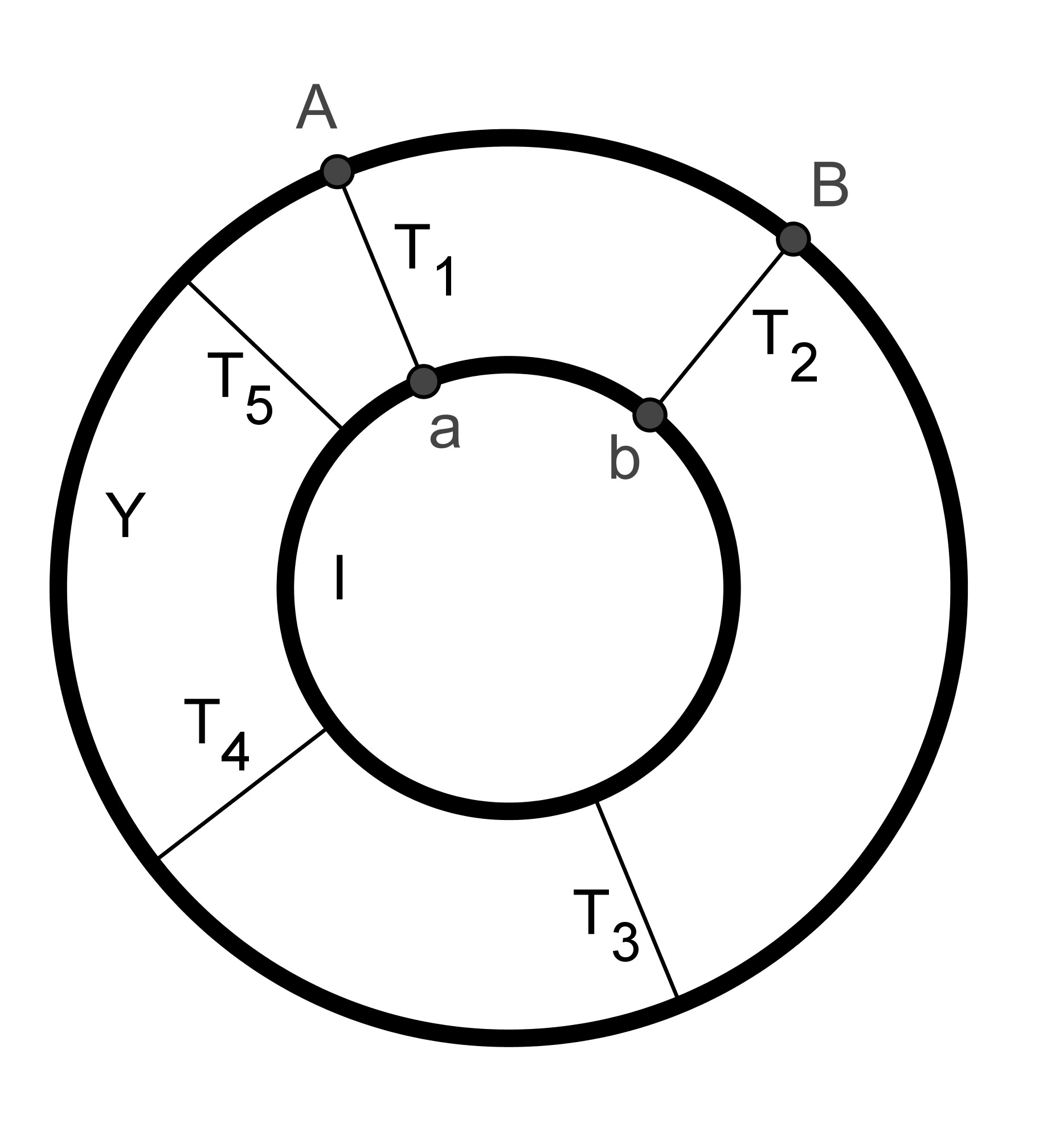 Det går att åka sträckan mellan två punkter A och B som båda ligger på den yttre (Y) ringleden antingen genom att hela tiden åka den yttre ringleden, eller genom att från A åka tvärleden (T1) in till a vid den inre ringleden för att där åka den inre ringleden i samma riktning som man annars skulle åkt den yttre ringleden och sedan på lämplig plats (b) åka tvärleden (T2) rakt ut till B. Beroende på hur långt det är mellan A och B är den kortaste vägen att bara åka Y eller så är det kortare att åka tvärled mellan Y och I för att åka I och sedan en annan tvärled rakt ut till B.